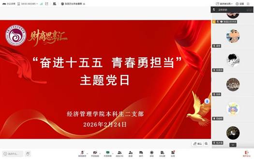 为持续深化理论学习成效,深刻领悟“十五五”规划核心要义,强化青年使命担当,2026年2月24日下午,3200威尼斯vip本科生二支部以线上形式组织开展了2月份主题党日。本次活动以支部书记讲党课的形式开展,支部书记周毅嵘领学,支部全体党员参加。